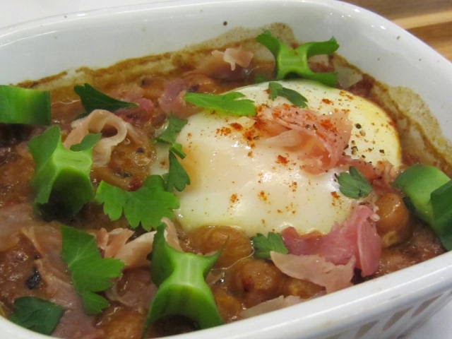 鷹嘴豆溫泉蛋配帕瑪生火腿